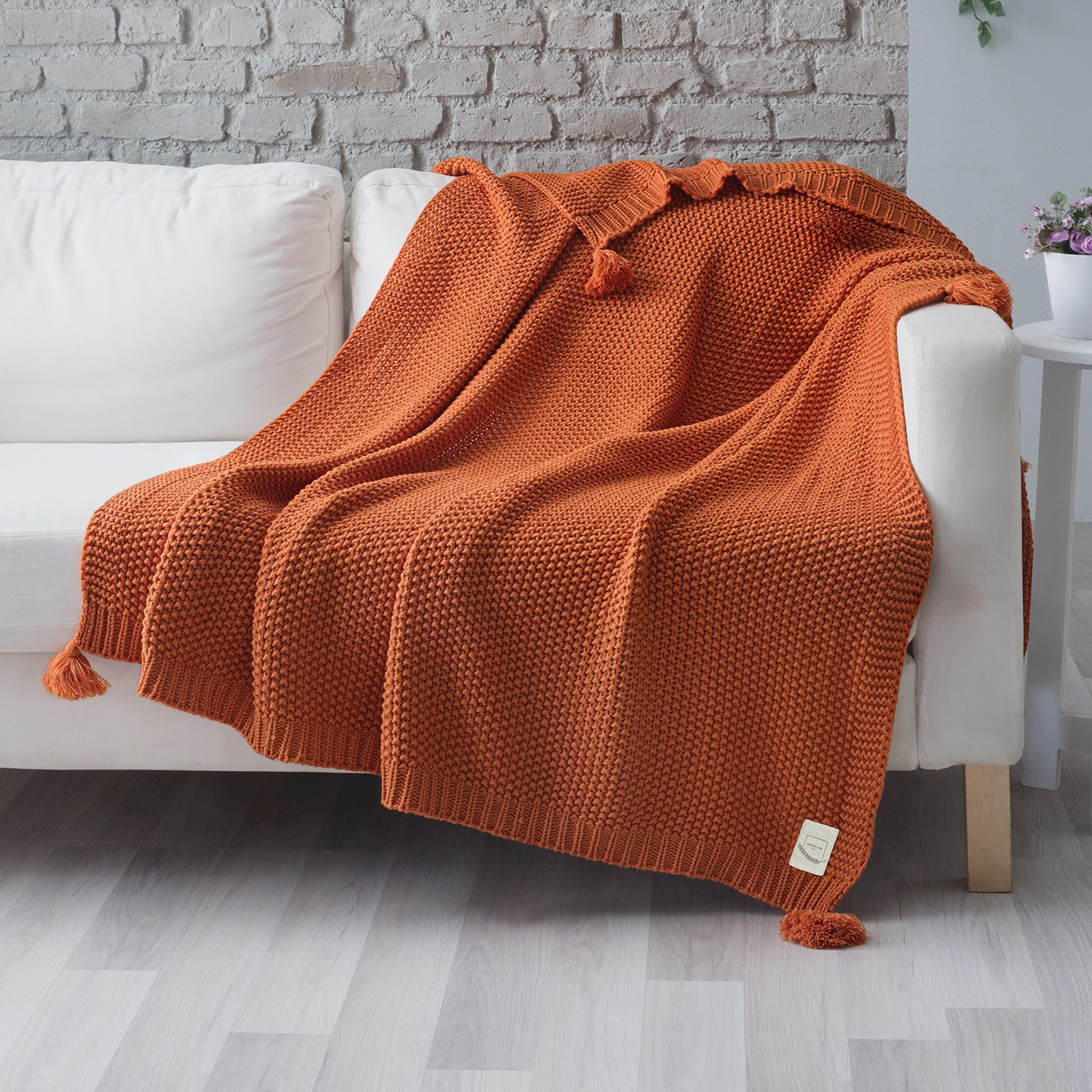 Battaniye - Coco Pirinç Örgü Ponponlu Triko Tv Battaniyesi Throw Koltuk Şalı - Miespiga