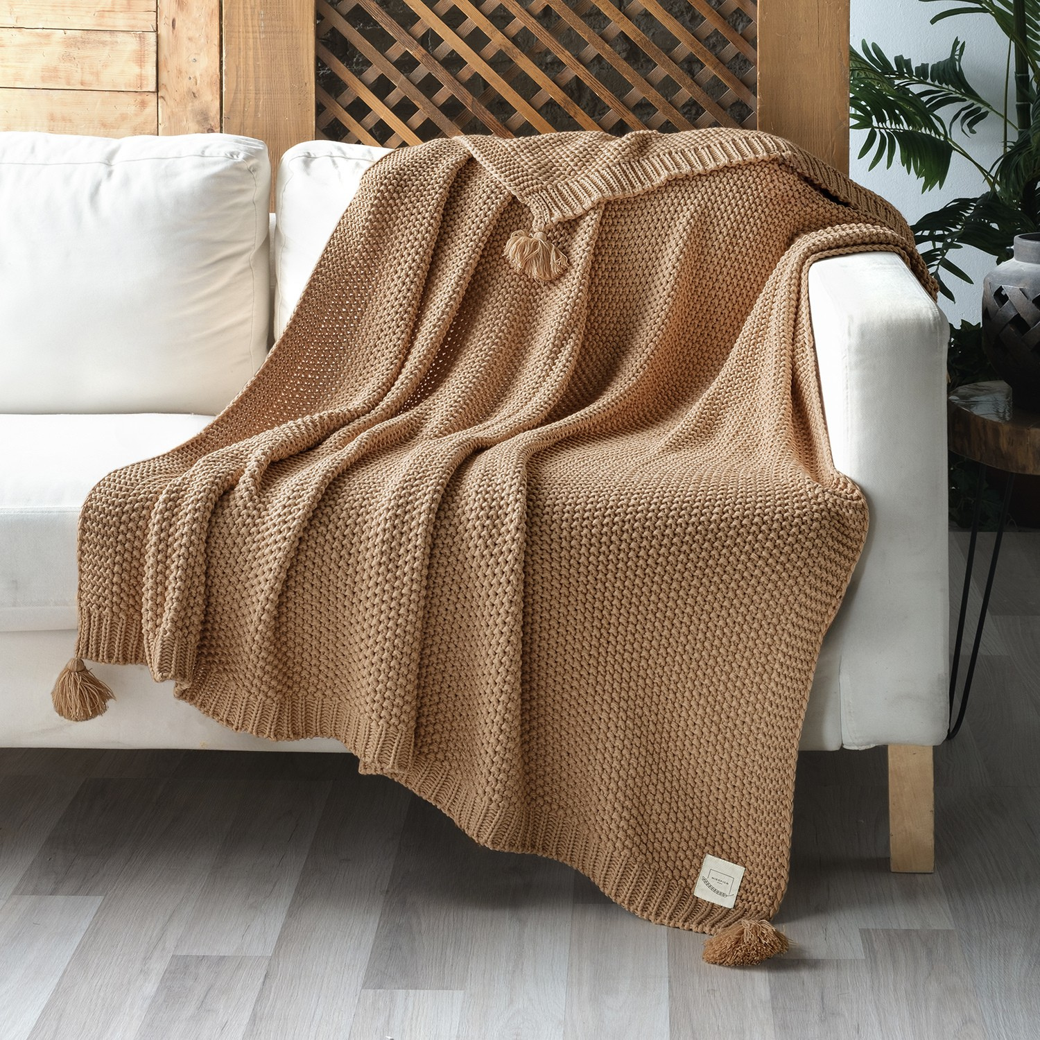 • Miespiga coco throw koltuk şalı akrilikten üretilmiştir. Pirinç örgü tekniği ve ponponlu kenarları ile şık bir örgü tasarımına sahiptir. Yumuşak dokusu sayesinde çift taraflı kullanıma uygundur.