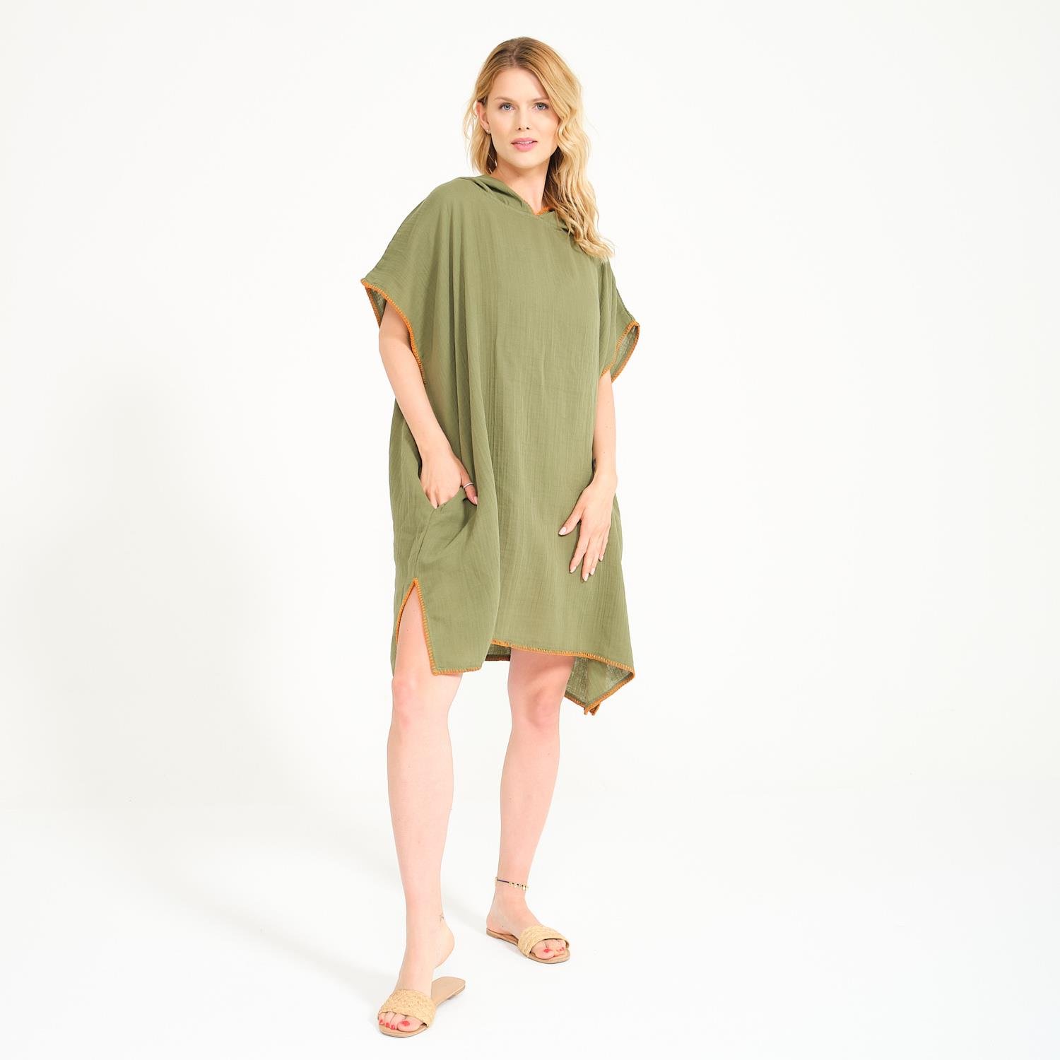 Kapüşonlu Kadın Müslin Sörf Yetişkin Panço