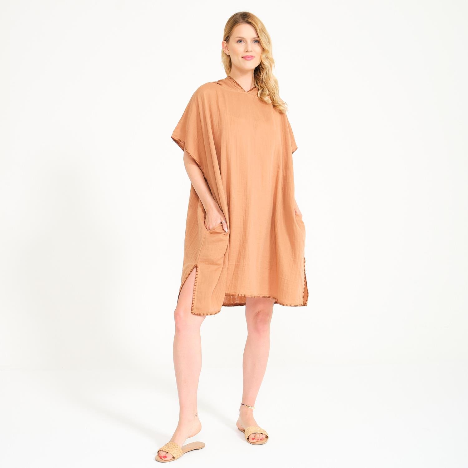 Kapüşonlu Kadın Müslin Sörf Yetişkin Panço